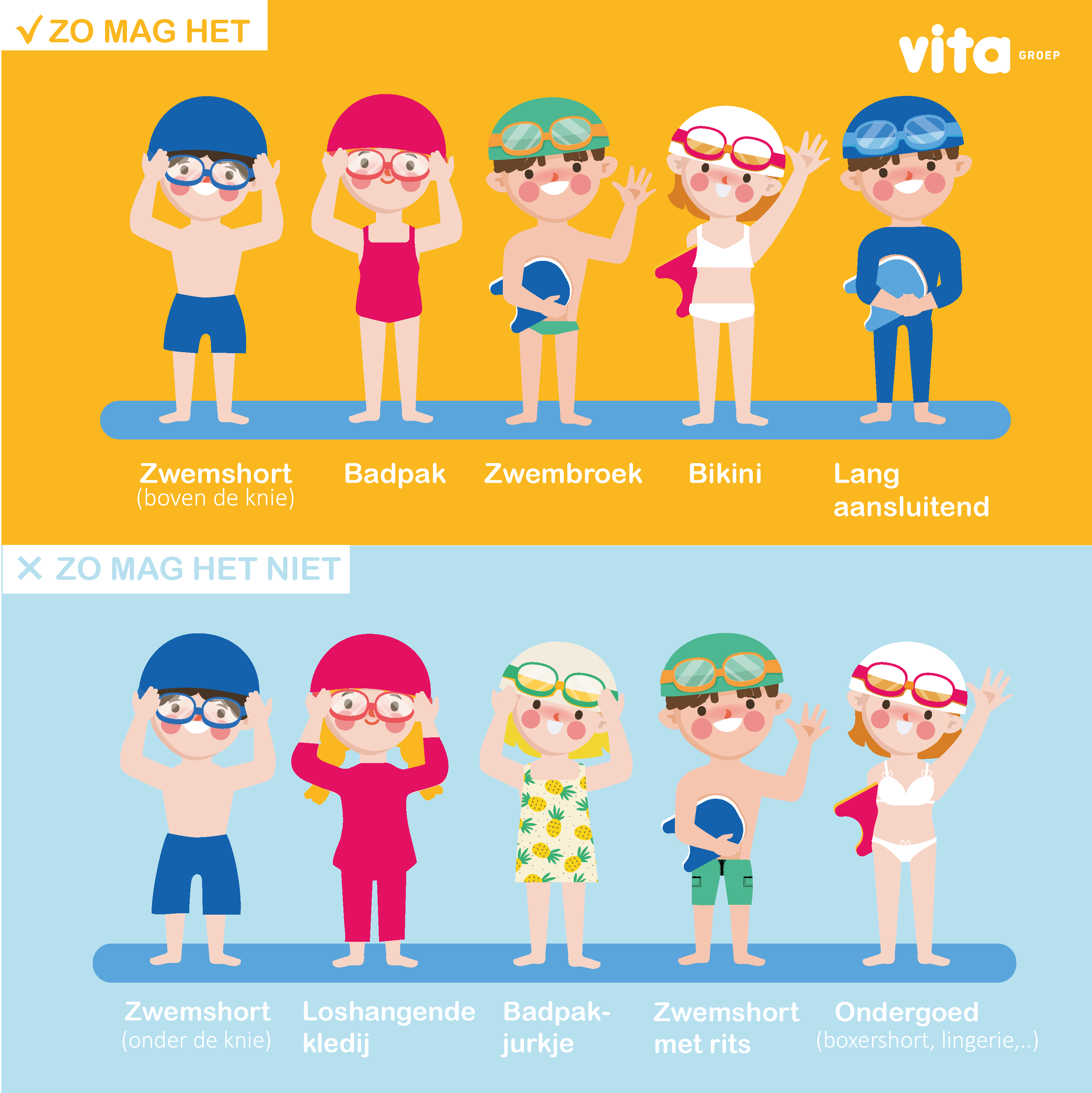 Vita Scheldebad behoudt zich het recht voor om toegang tot het zwembad te weigeren bij foutieve kledij.